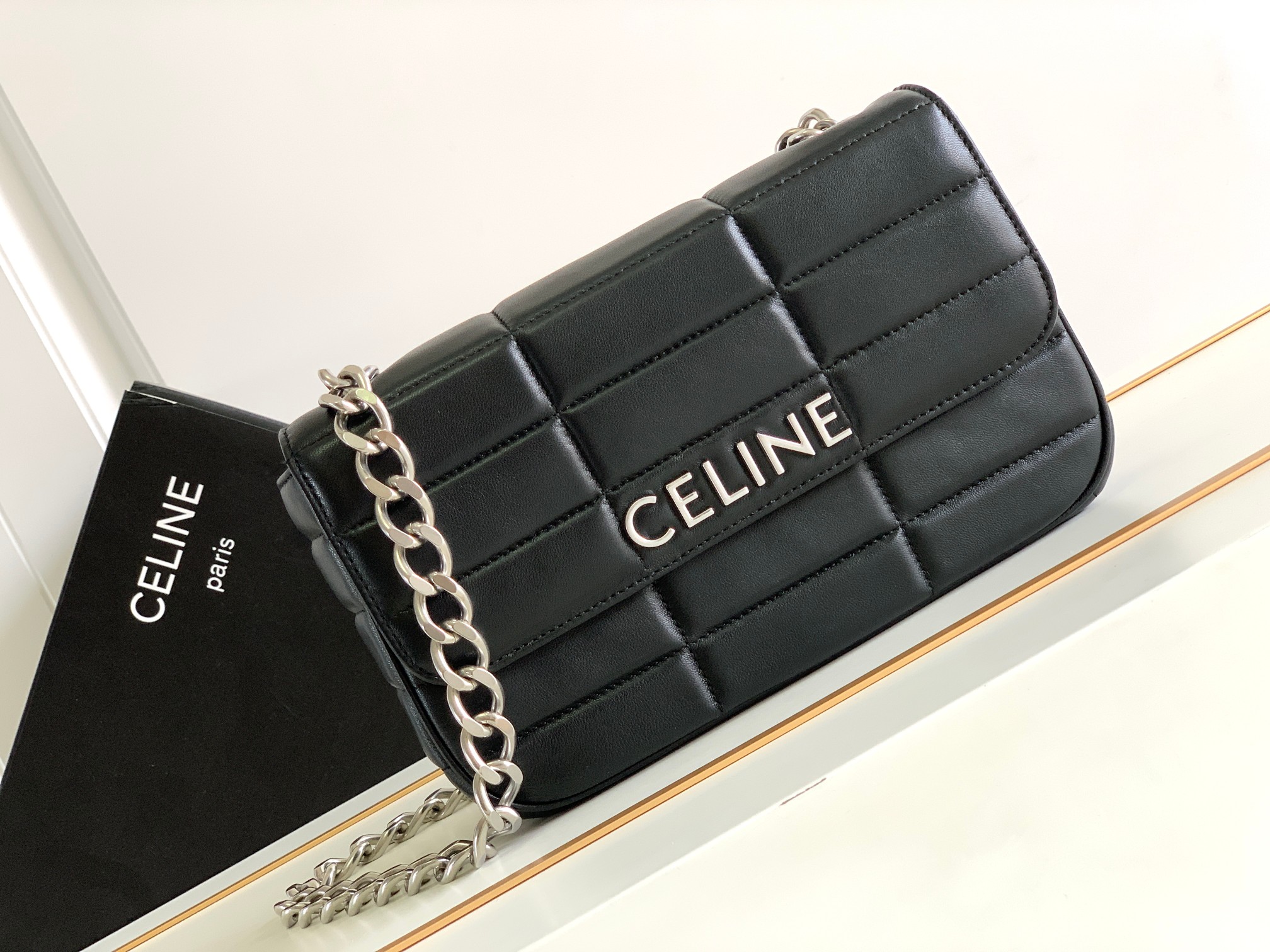 CELINE CHAIN SHOULDER BAG MATELASSE MONOCHROME