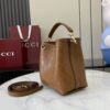 GUCCI GG Emblem small bucket bag in beige and white GG fabric